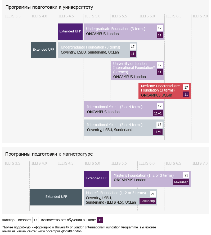 Если Вы являетесь иностранным студентом с образованием и ваше предыдущее образование составляет менее 14 лет, и/или вы не соответствуете требованиям выбранного вами университета, вам необходимо пройти Undergraduate Foundation Programme.